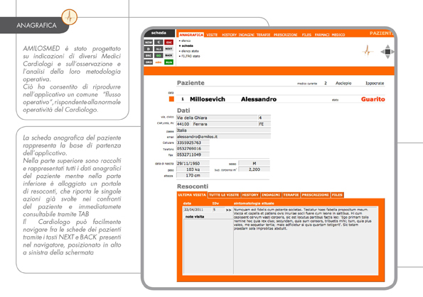 La consultazione della scheda anagrafica consente al medico di avere in pochi istanti un quadro clinico chiaro e dettagliato dello stato del paziente e decidere in pochi istanti sui nuovi interventi da effettuare.